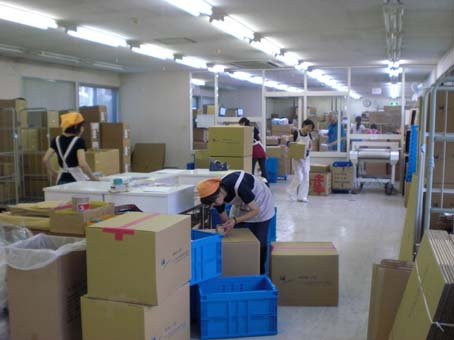 写真は、当社の物流センターです。中国の検品工場と日本の工場から入荷した商品をこの物流センターで再度全商品検品及び検針を行い全て当社の箱に詰め替えて出荷しますので、品質に自信があります。