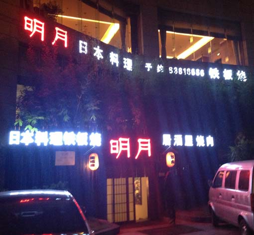 中国のこんな地方都市にも下の写真のような日本料理店があり、店員さんは着物姿で片言の