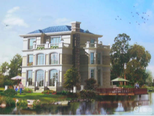 写真のような一軒家が建ち並び、住宅地入口は凱旋門のよう!警備員も24時間立っている住宅