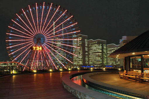 深夜までのんびり出来たのですが、途中写真のみなとみらいの夜景が見える足湯へ・・・