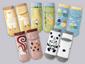 ゆるかわいいほのぼのした動物たちが表と足底に。